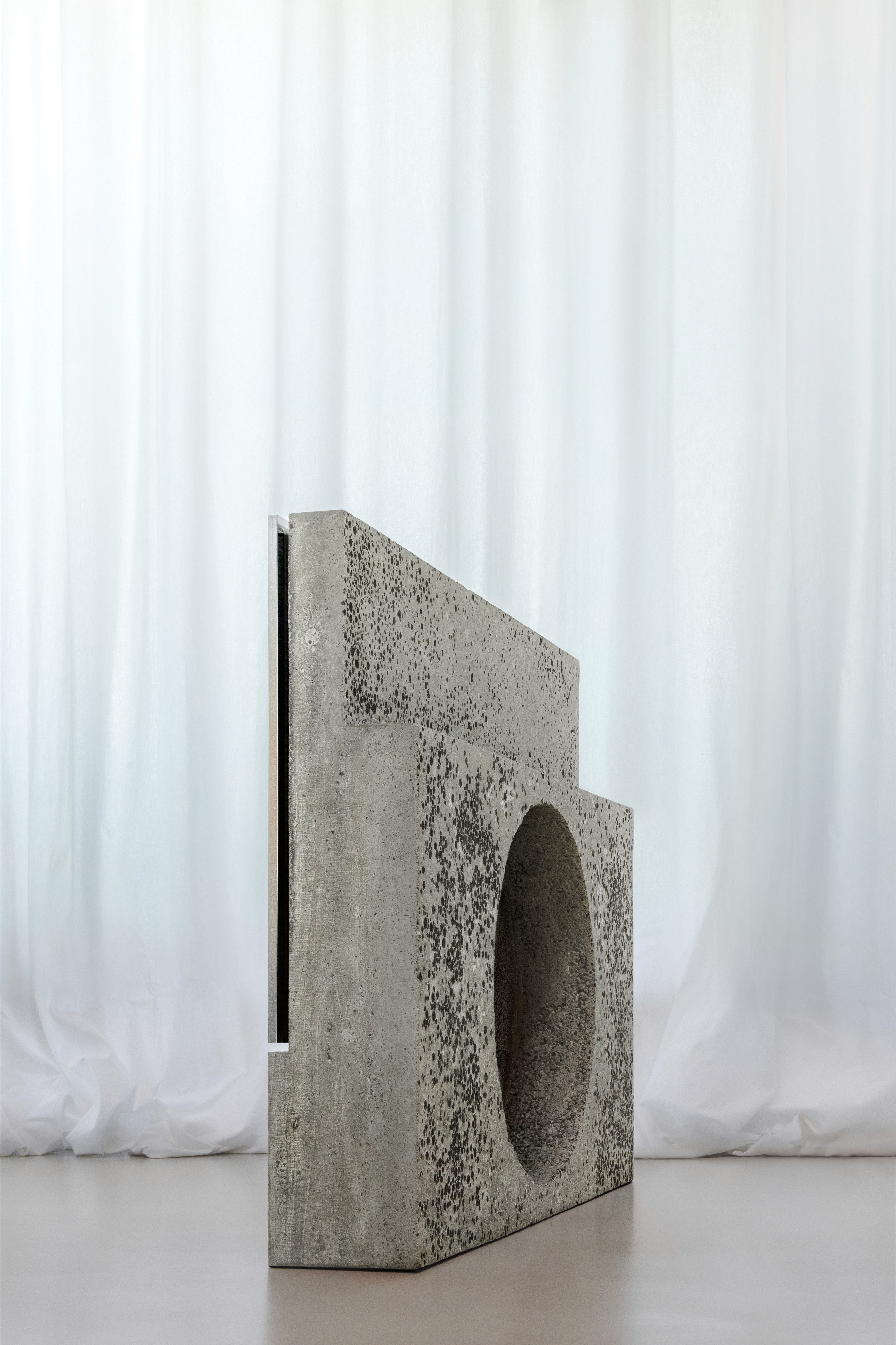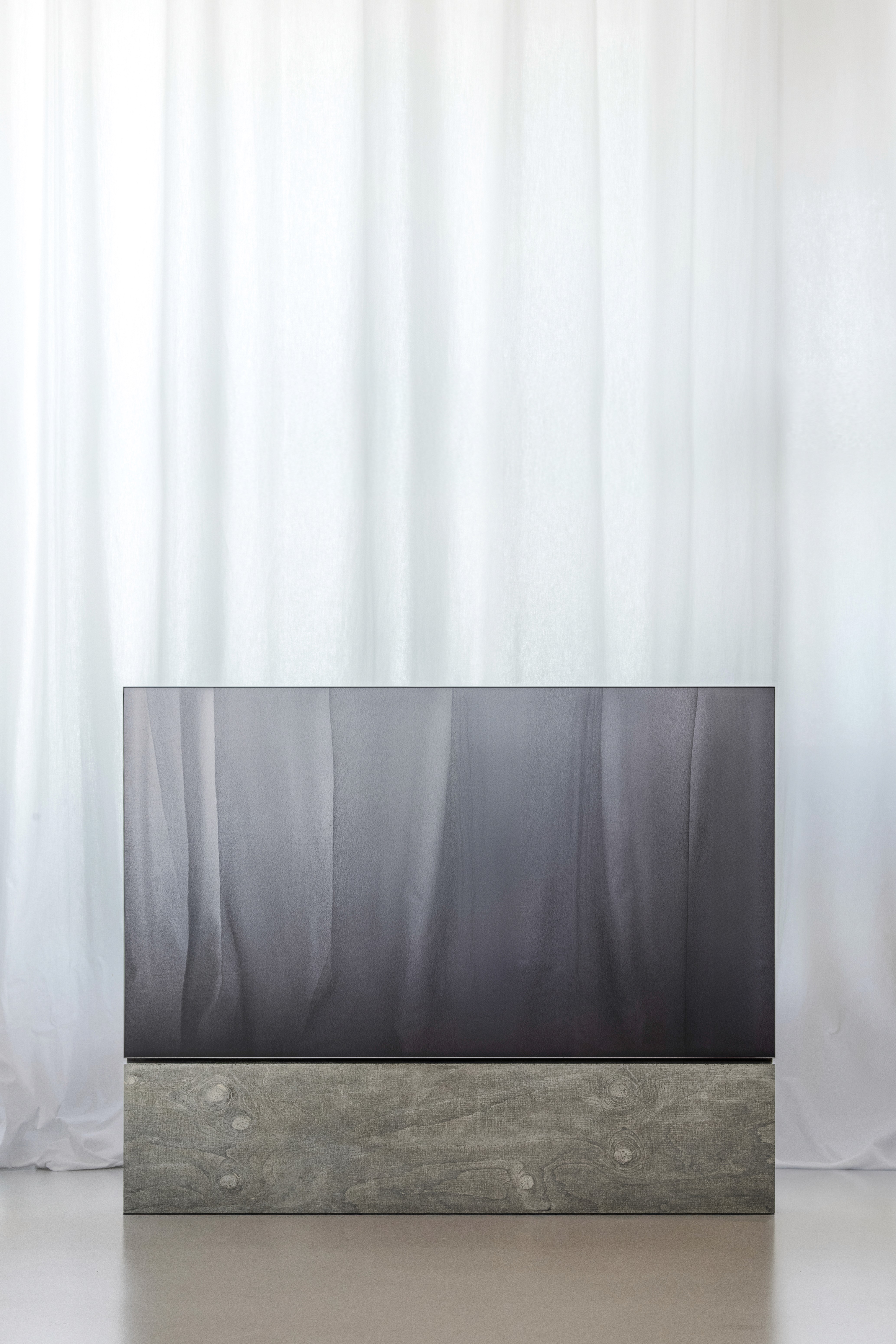 There’s irony here, too. The TV stand, typically invisible, functional, forgettable, is elevated to sculptural significance. Meanwhile, the screen it supports becomes secondary, just another reflective plane in the composition. Bard reverses the hierarchy of attention, making us consider the structure beneath as the spectacle.That tension defines the object. The concrete base, seemingly eternal, is built to outlast the very technology it supports. The television, svelte, current, and destined for obsolescence, will one day fade to black, its cables outdated, its software unsupported. And yet the stand will remain, mute and monolithic. What happens then? Will future users adapt it to new technology, or will it be left behind, admired as a sculptural remnant of a bygone digital age? In designing permanence around the impermanent, Bard asks us to confront a fundamental question: how do we create objects that can evolve, rather than expire, with time?